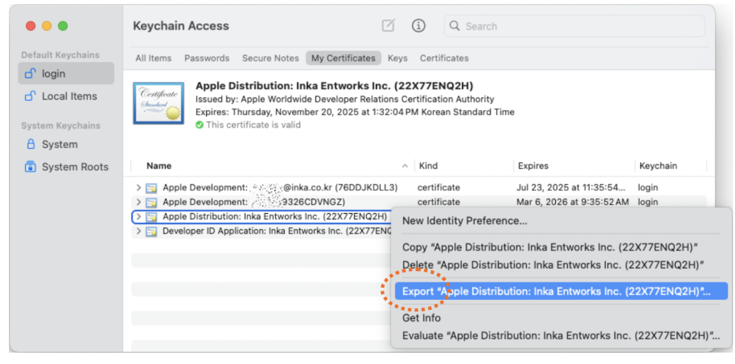 Section titled “How to create a certificate P12 file in the Mac Keychain app”-